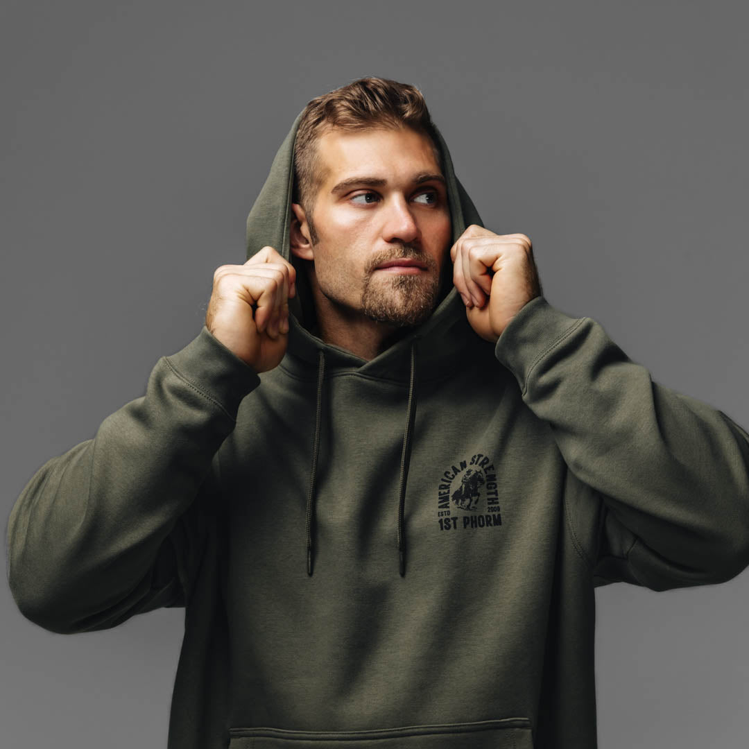 Made from our favorite premium hoodie material, the American Strength Hoodie is a staple — perfect for in and out of the gym.