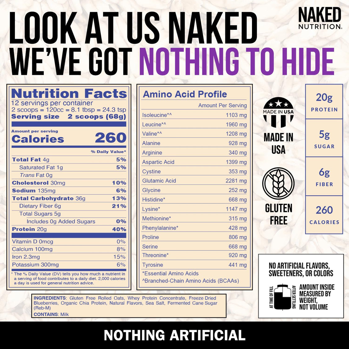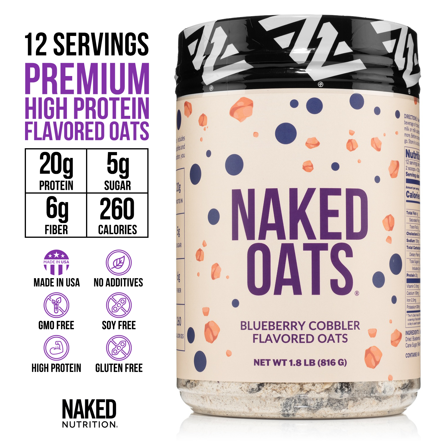 Naked Oats combines premium whey protein with gluten-free rolled oats for a delicious shake or oatmeal that support lean muscle, stable energy, and optimal digestion. With less than thirty seconds of prep time, you can have a high performance breakfast rich in protein and fiber ready to go when you wake up.