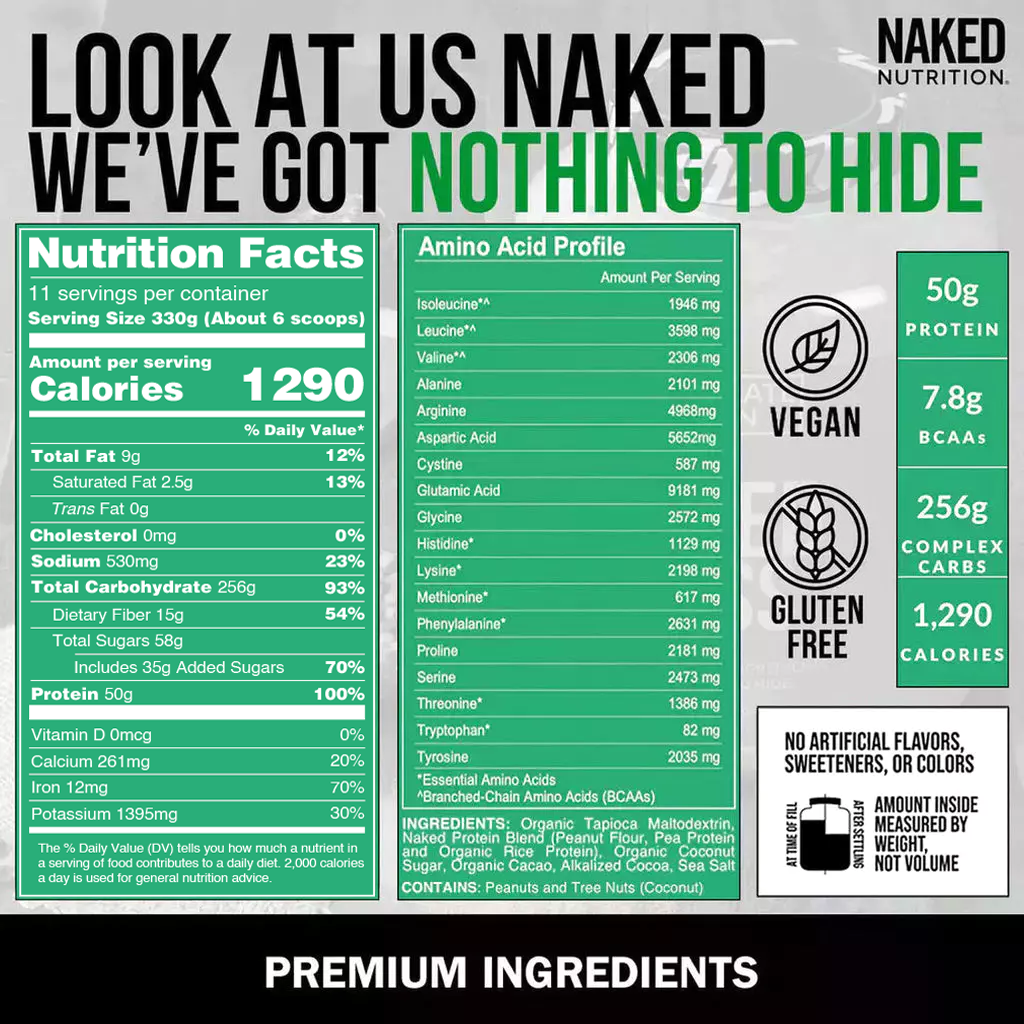 Vegan Naked Mass is an ideal between meal or before bed supplement to maintain a high protein and calorie diet. We've combined our pea protein, organic brown rice protein, roasted peanut flour, and organic tapioca maltodextrin to deliver the optimal ratio of clean source multi-phase protein and complex carbohydrates to gain and maintain lean mass. To ensure a complete amino acid profile, the ratio of pea to rice protein is 2:1. Instead of using inferior corn or wheat based maltodextrins, Naked Mass’s maltodextrin comes from organic tapioca which is naturally gluten free. We are committed to shortening the steps between our farms and you.