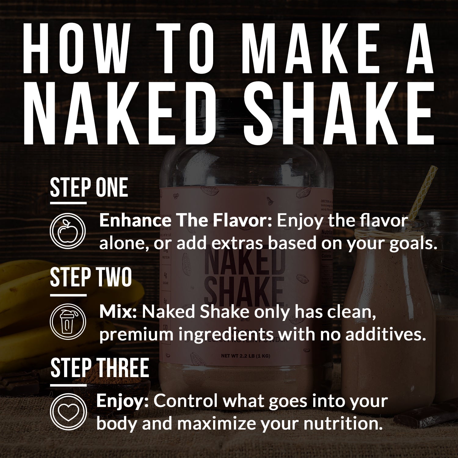 Satisfy your chocolate cravings and increase daily protein intake on a busy schedule. Chocolate Naked Shake starts with our best-selling pea protein, adds MCT oil, and natural plant-based flavors. The result is a crave-worthy shake that delivers 20g of protein and only 4g of sugar. Naked Shake only contains the premium ingredients you need to maintain optimal energy levels and manage a healthy weight.
