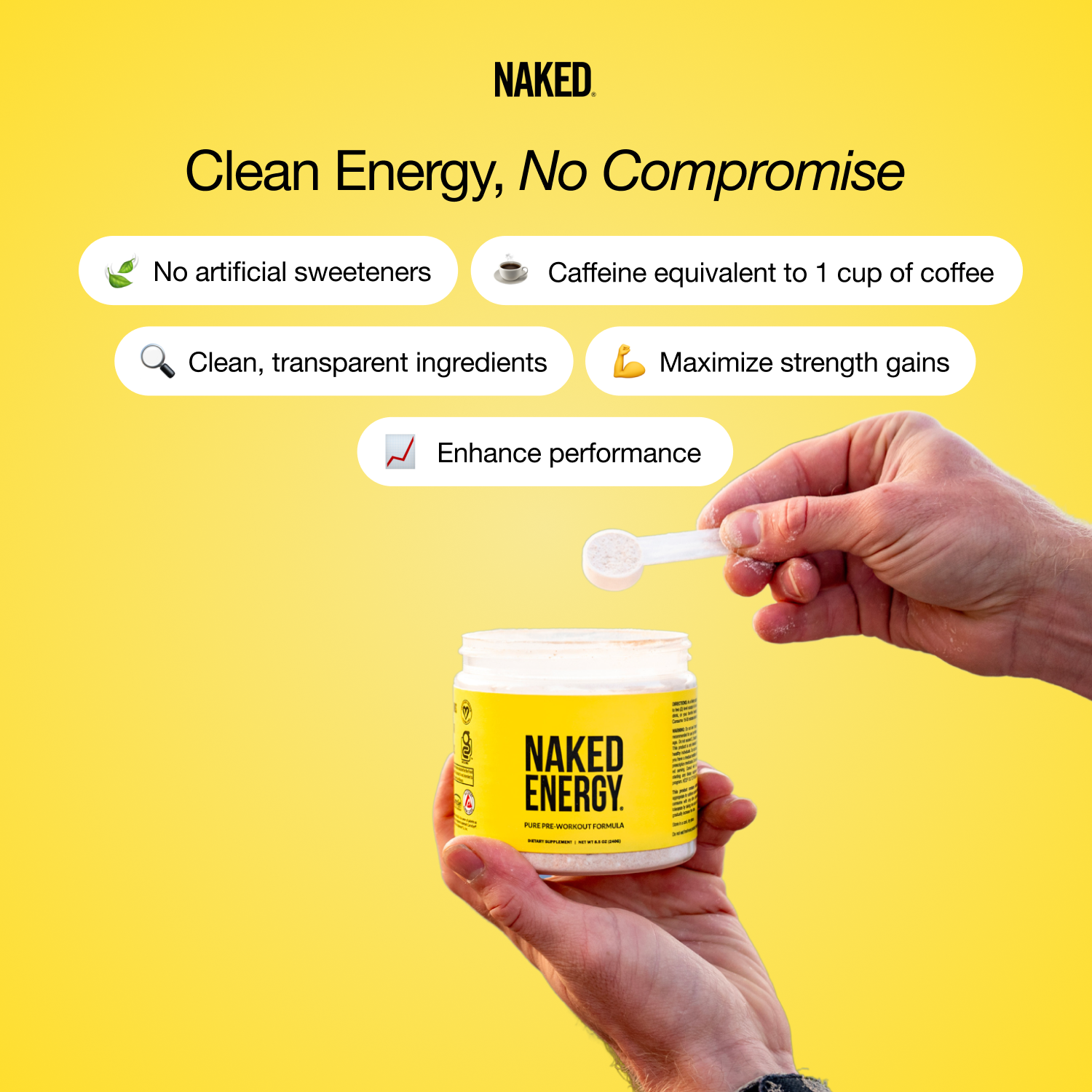 Citrus Naked Energy is a clean pre-workout powder that has been formulated with only Non-GMO ingredients. Our premium vegan pre-workout formula will help boost energy, strength, and power, and give you that extra edge so you can maximize your performance at the gym.