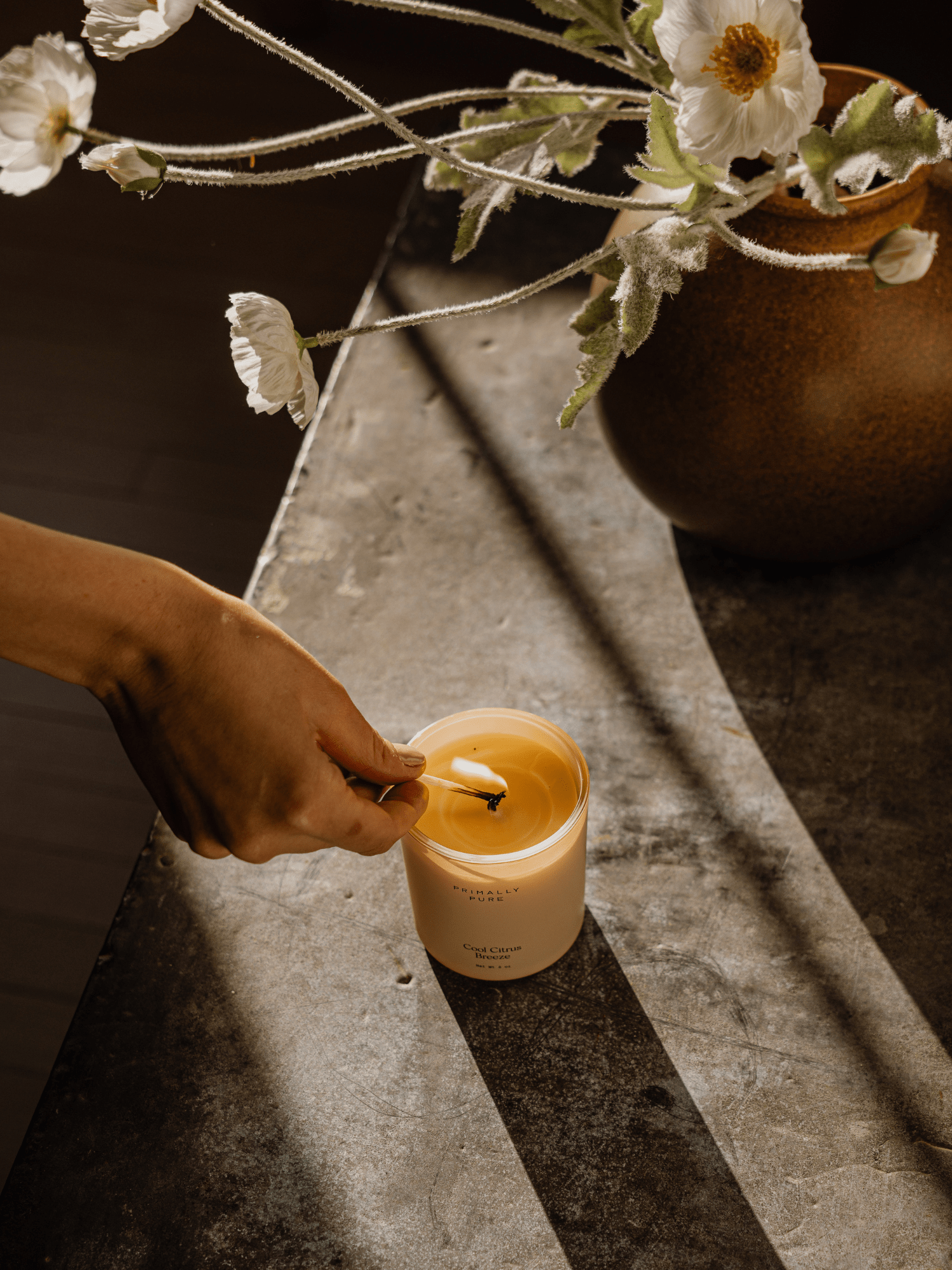 Strike a match to infuse your space with purifying negative ions and uplifting non-toxic aromas from clean-burning beeswax and essential oils. Inspired by the scents of a Southern California Summer, this blend is brimming with sweet herbals and notes of bright citrus and flower blossoms to boost the health of your home and brighten your mood.