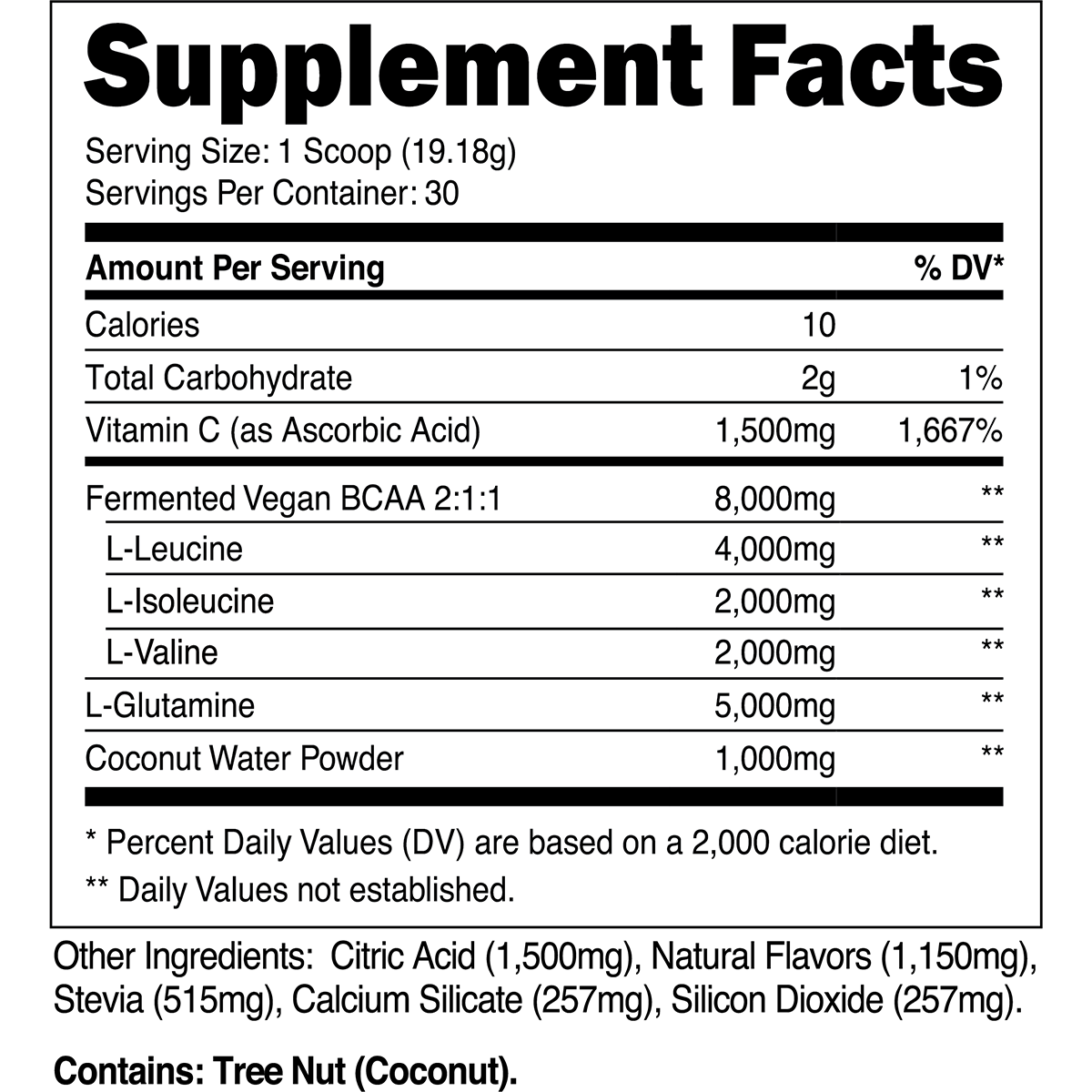 Synergistic Formula for Pre-/Intra-/Post-Workout Use: In addition to branched-chain amino acids, our BCAA powder provides 5,000 mg of L-glutamine, 1,500 mg of vitamin C, and 1,000 mg of coconut water powder to promote hydration, support immune function, and decrease muscle damage.