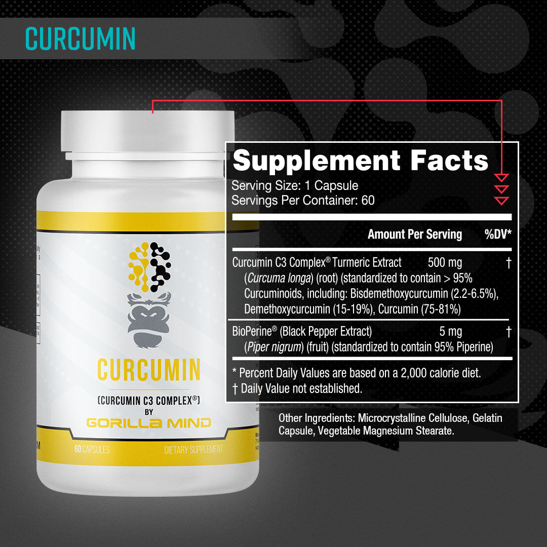Gorilla Mind's® Curcumin C3 Complex contains the top of the line combination of ingredients for maximum bioavailability and effectiveness to ensure you're receiving the all the benefits from the product.