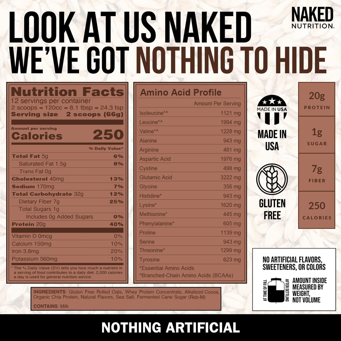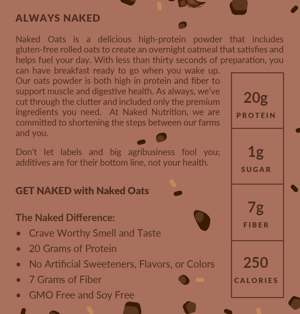 Naked Oats combines premium whey protein with gluten-free rolled oats for a delicious shake or oatmeal that support lean muscle, stable energy, and optimal digestion. With less than thirty seconds of prep time, you can have a high performance breakfast rich in protein and fiber ready to go when you wake up.